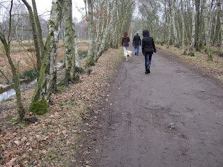 The forest was very bare and it was a dull grey day but we had a lovely walk playing with the dog.