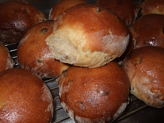 I will post a couple of recipes I am making today. Firstly I'm making my usual Hot Cross Buns. I've adapted the original recipe, instead of currants and peel I add raisins and I add more flour than the original recipe because I found the mix too sticky.
